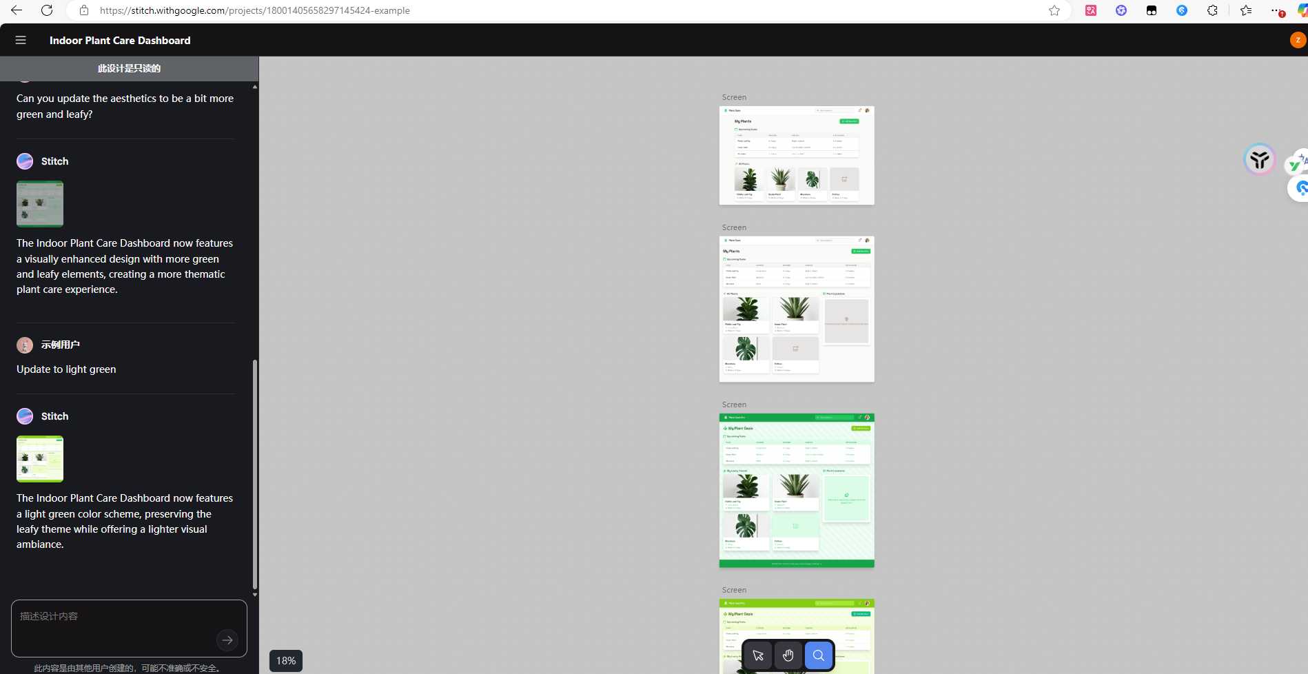 - 多版本设计: 对于同一个需求,Stitch 通常会提供多个设计变体 (Variants),让您可以选择最接近您想法的版本。